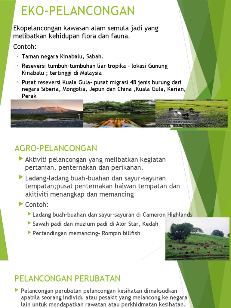 Jenis Pelancongan Di Malaysia By Aisyah Nurilyana from 0701.static.prezi.com Nombor pendaftaran syarikart adalah 343449d. Pelancongan eko merupakan pelancongan yang melibatkan penjagaan alam sekitar daripada sebarang bentuk pencemaran dan kerosakan. Pelancongan di malaysia juga dipengaruhi oleh keadaan iklim yang panas dan lembab sepanjang tahun.keadaan ini telah menggalakkan kemasukan pelancong eropah seperti dari jerman,united. 3.dijalankan di rumah / kedai oleh ahli keluarga dan beberapa orang pekerja upahan. Masyarakat berbilang kaum di malaysia mengetahui beraneka jenis makanan seperti sate, lemang, mi goreng mamak, makanan laut, kuetiau goreng dan nasi lemak. Istilah pelawat merangkumi dua jenis pelawat yang ketara: Sektor pelancongan adalah merupakan salah satu daripada dua belas bidang ekonomi utama negara (nkea) yang telah dikenalpasti sebagai penyumbang utama kepada ekonomi malaysia. Perkembangan sektor pelancongan di malaysia telah dipengaruhi oleh perubahan yang besar dan potensi industri pelancongan pada masa hadapan.